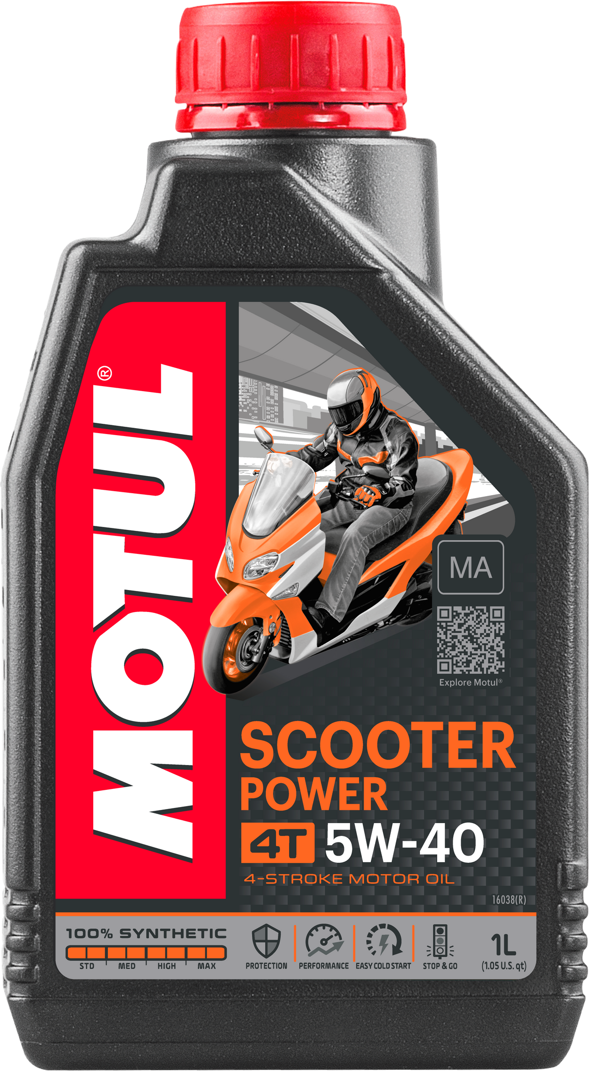 Features: * Scooter Power - 100% Synthetic 5W40 for enhanced engine protection