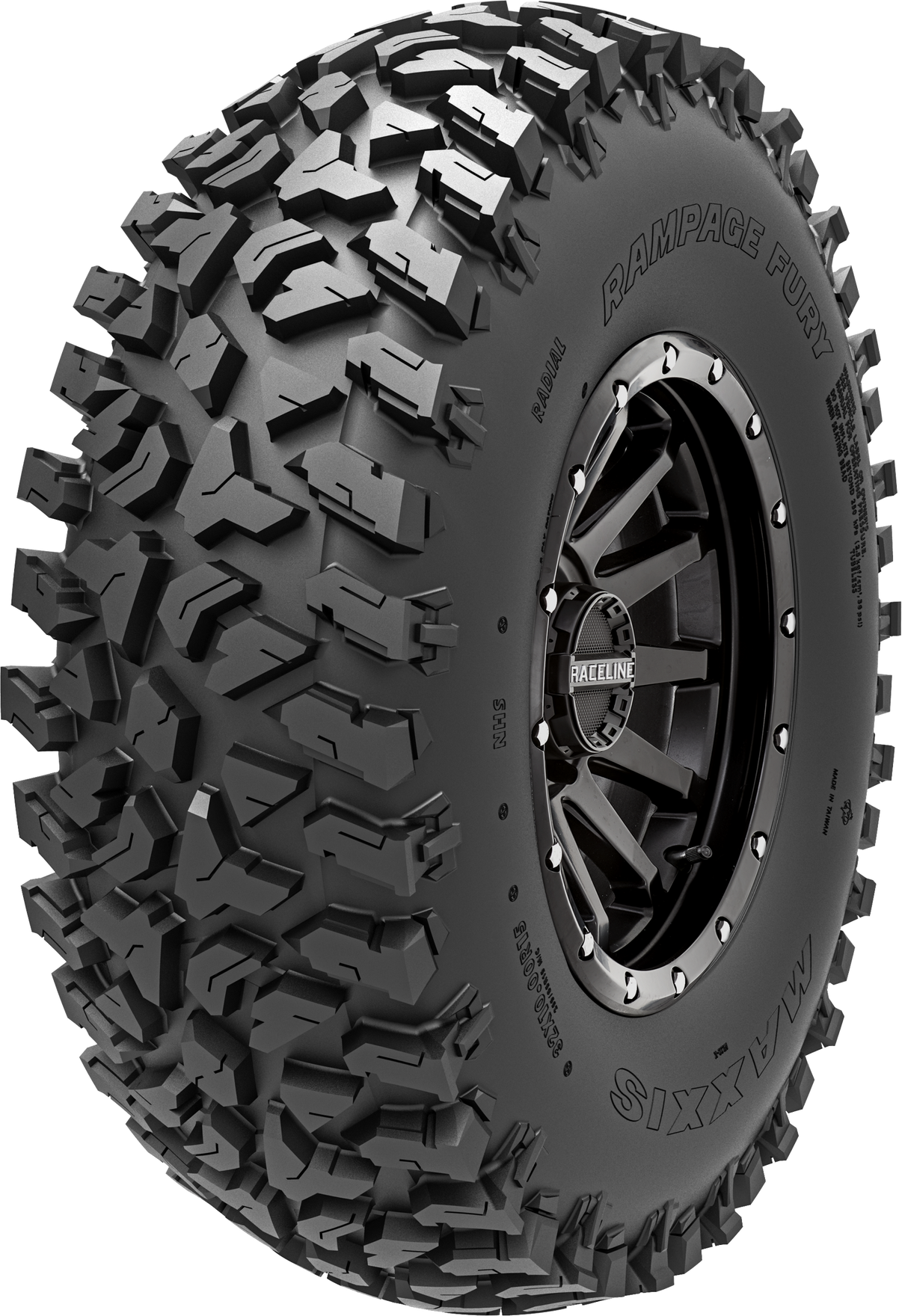 Introducing the MAXXIS Tire Rampage Fury 32x10R15 8PR, engineered for those who demand superior performance on all terrains. This tire is built with an 8-ply-rated radial construction that ensures durability and resilience, making it perfect for off-road adventures. The aggressive all-terrain tread pattern provides exceptional traction, whether you're navigating rocky trails or muddy paths, giving you the confidence to tackle any landscape.