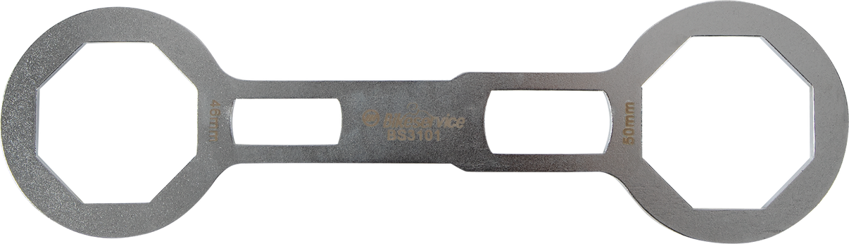 Fork Wrench Tool - 46/50 mm The BIKESERVICE Fork Wrench Tool (Part Number: BS3101) is an essential tool for motorcycle enthusiasts and professionals alike. Designed for dual chamber closed cartridge...