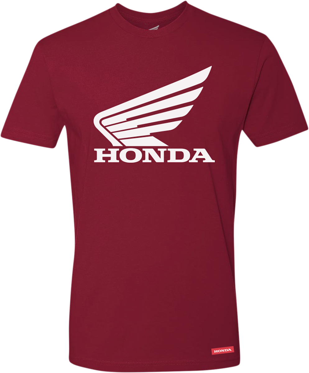 Elevate your casual wardrobe with the HONDA APPAREL Honda Wing T-Shirt in a striking maroon color. This comfortable and stylish t-shirt features a classic crew neck design, making it a versatile addition to any outfit. Perfect for fans of Honda or anyone who appreciates quality apparel, this t-shirt showcases a bold screen-print graphic on the front, proudly displaying the iconic Honda Wing logo.