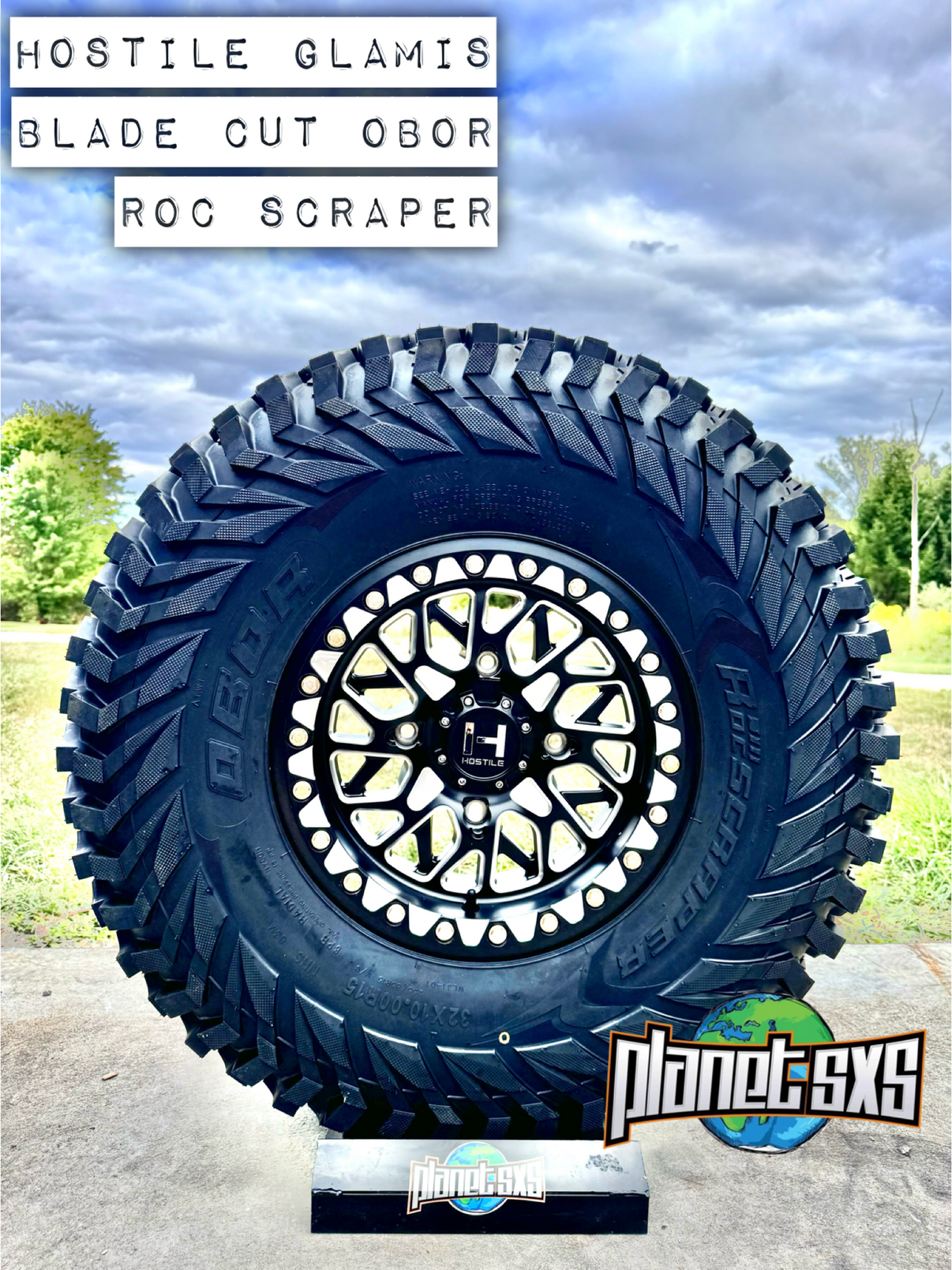 Get a set of (4) Hostile Glamis beadlocks mounted on 8 ply radial Obor Roc Scrapers with vehicle specific lug nuts included Durometer Ratings: Roxxzilla Comp (sticky): 52 Obor Roc...