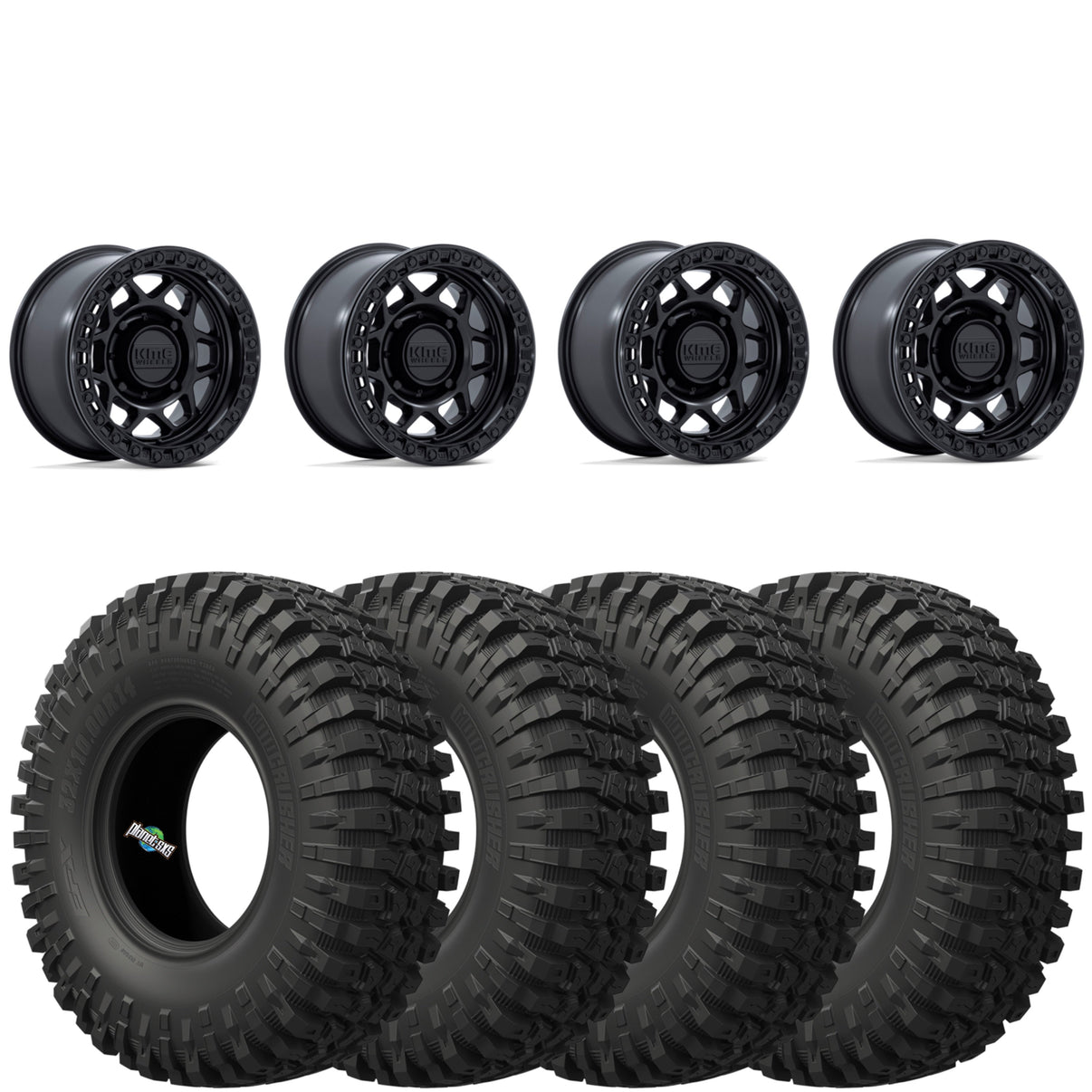 Get a set of (4) KMC Torx 15x7 5+2 (+38mm) beadlocks mounted on 8-ply radial EFX MotoCrusher tires with vehicle specific lug nuts.