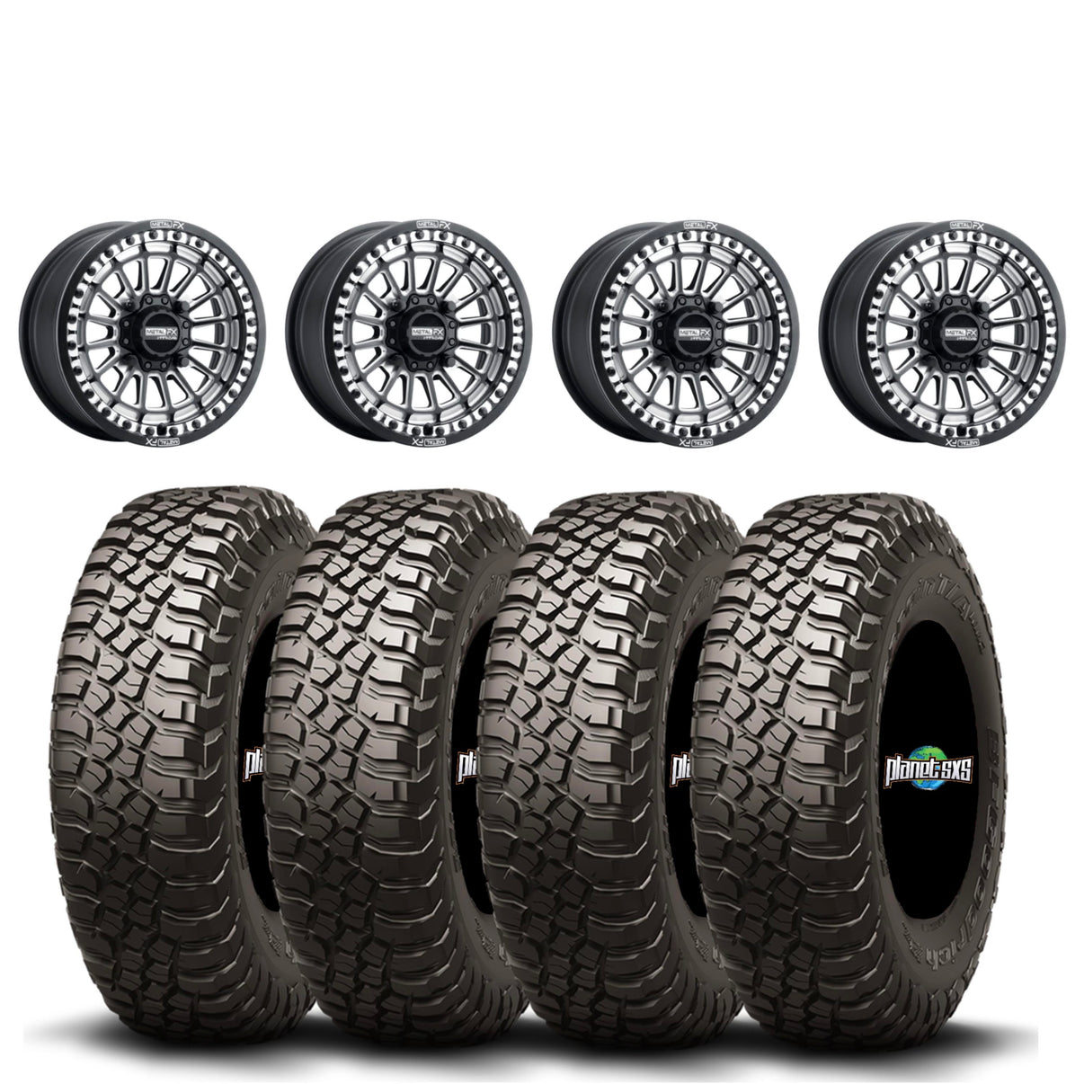 Get a set of (4) matte black Metal FX Delta beadlocks mounted on a set of 8 ply radial BFG KM3 tires with vehicle specific lug nuts included