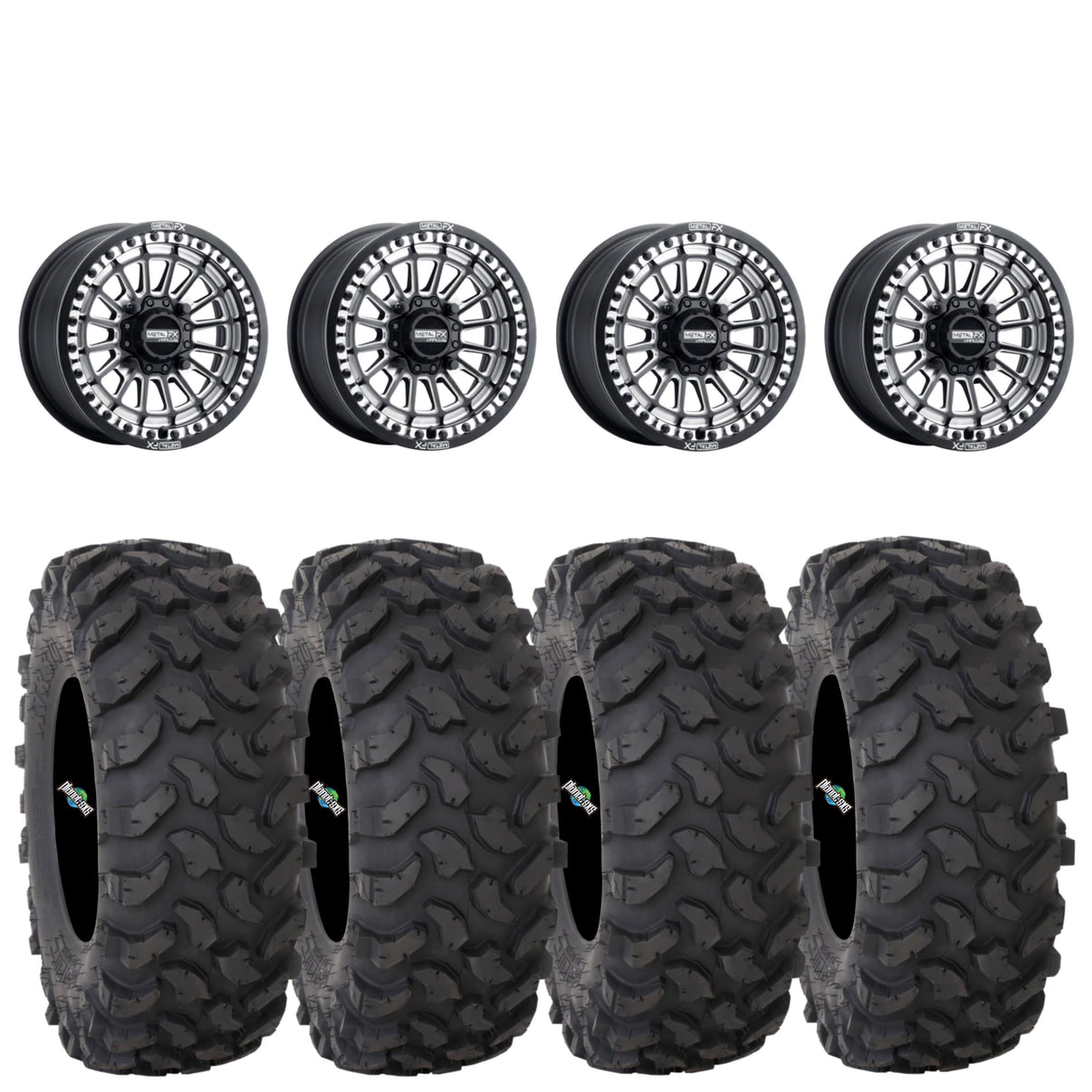 Metal FX Delta Beadlock Wheels (Black Contrast Cut) on System 3 XTR370 Tires – UTV Wheel & Tire Kit