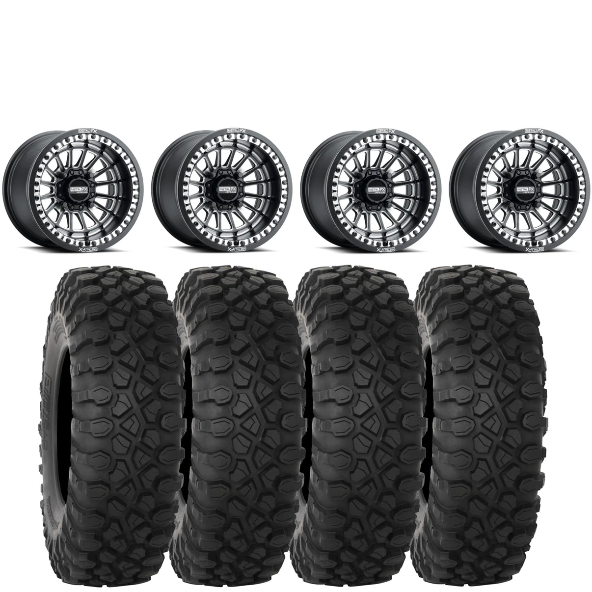 Metal FX Delta Beadlock Wheels (Satin Black Contrast Cut) on System 3 XC450 Tires – UTV Wheel & Tire Kit