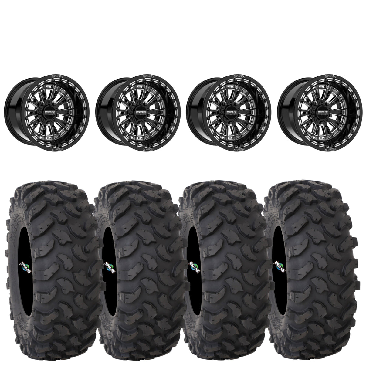 Get a set of (4) Metal FX Slayer R 15x8 4+4 (+0mm) beadlocks mounted on 8-ply radial System 3 XTR370 tires with vehicle specific lug nuts.