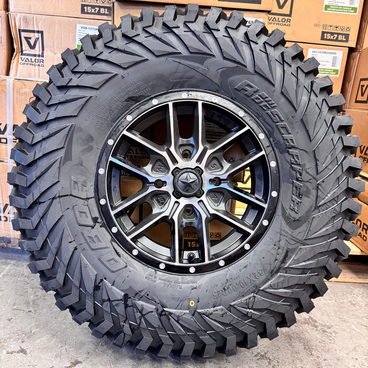 4/110 Bolt Pattern Yamaha Wolverine Viking CF Moto Z Force Uforce Get a set of (4) MSA Fang wheels mounted on 8 ply radial Obor Roc Scraper tires with...