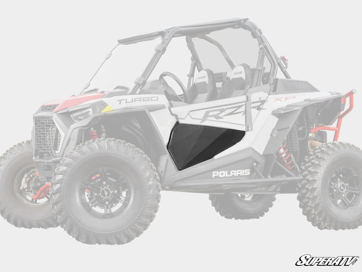 Why We Make Them Designed to fill the gap, SuperATV's RZR lower door inserts are lightweight and contoured to your machine's shape giving your ride a sleek look. The fit is tight and rattle free, so no need to worry about unwanted noise while riding. These lower panels are easy to install and work in conjunction with Polaris OEM doors. Each lower door piece is constructed of a tough, lightweight aluminum and powdercoated for a long lasting durable finish. Keep that dirt, water and mud out of your machine while you're killing it on the trail!