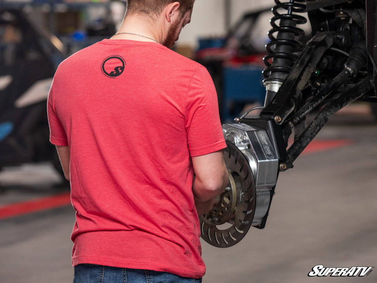 Rock the SuperATV Look We all love the hysteria of rocking out with our buddies while burying our side-by-sides tire-deep in the mud. That's why we've made this SuperATV Rock 'n Roll T-Shirt so you can express your love for off-roading and SuperATV while embracing the inner rocker in all of us. The front has a cool, edgy design while our logo is sported on the back. It's made of a cotton and polyester blend for a lightweight feel that can withstand multiple cycles through the wash.