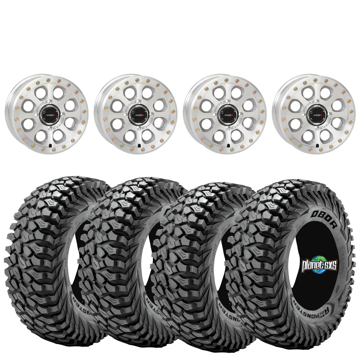 Get your choice of (4) System 3 SB7 beadlocks mounted on Obor Roc Scraper 8 ply radial tires with vehicle specific lug nuts