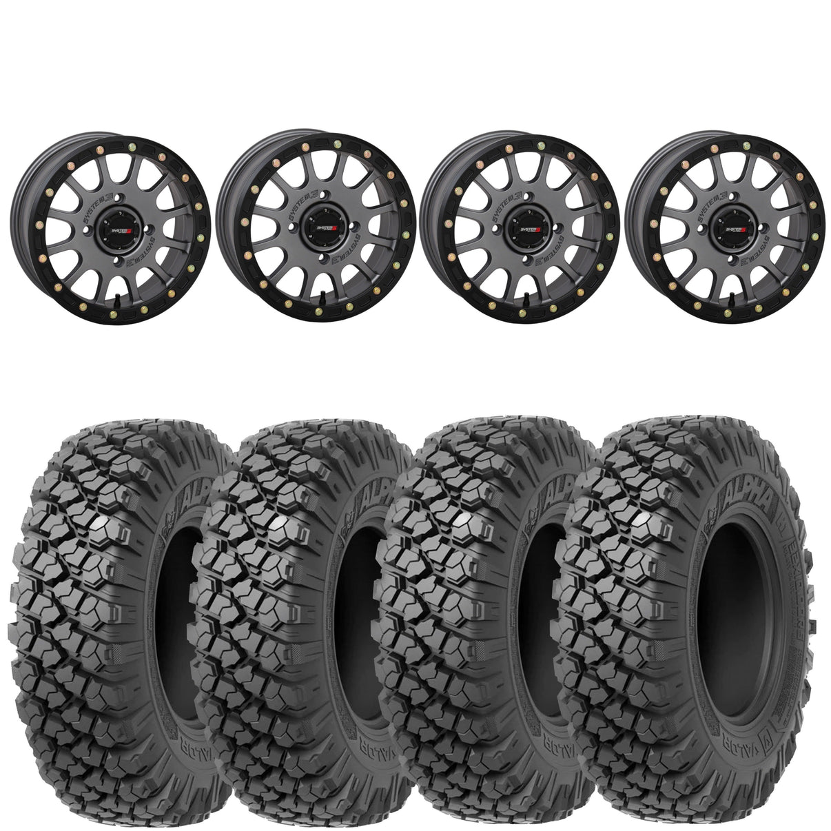 System 3 SB5 Beadlock Wheels Gunmetal Gray on Valor Alpha Tires – UTV Wheel & Tire Kit (Set of 4) 4/156