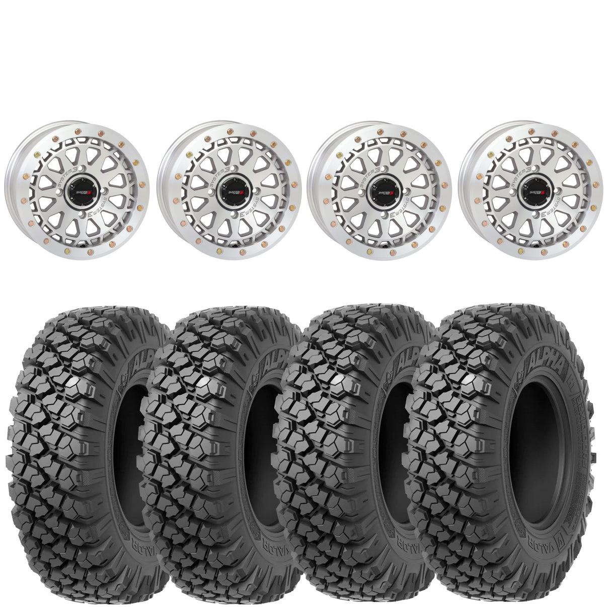 System 3 SB6 Machined Beadlock Wheels on Valor Alpha Tires – UTV Wheel & Tire Kit