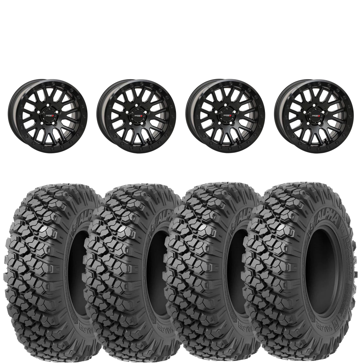 Get a set of (4) System 3 SB9 15x9 +10mm (5+4) offset beadlocks mounted on 8 ply radial Valor Offroad Alpha tires with vehicle specific lug nuts