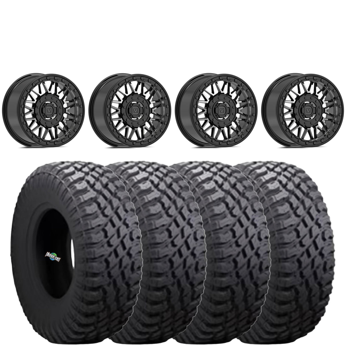 Get a set of (4) Valor V08 Dual drilled (4/137 and 4/156) 15x7 beadlocks with a 5+2 (+30mm) offset mounted on 8 ply radial Atturo Trail Blade XT with vehicle specific lug nuts included
