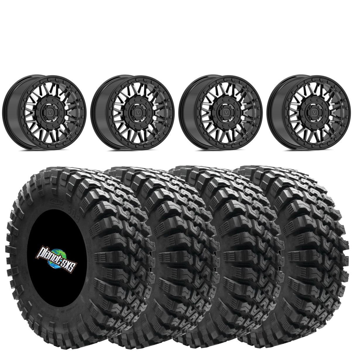 Get a set of (4) Valor V08 Dual drilled (4/137 and 4/156) 15x7 beadlocks with a 5+2 (+30mm) offset mounted on 8 ply radial QuadBoss QBT808 tires with vehicle specific...