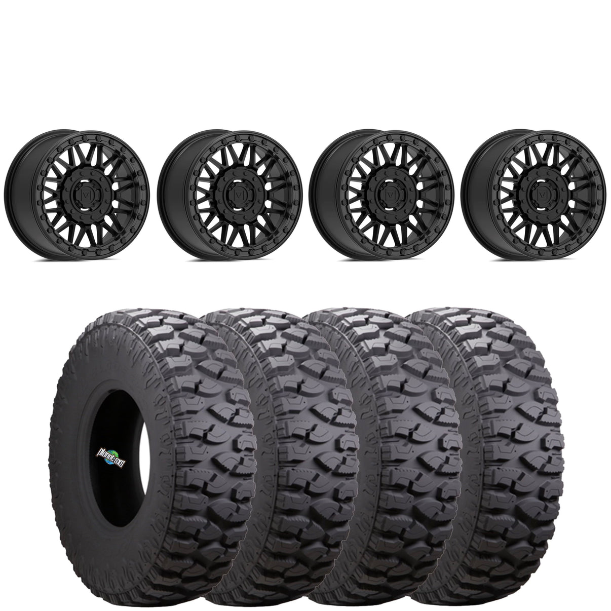 Get a set of (4) Valor V08 Dual drilled (4/137 and 4/156) 15x7 beadlocks with a 5+2 (+30mm) offset mounted on 8 ply radial Atturo Trail Boss SXS with vehicle specific...