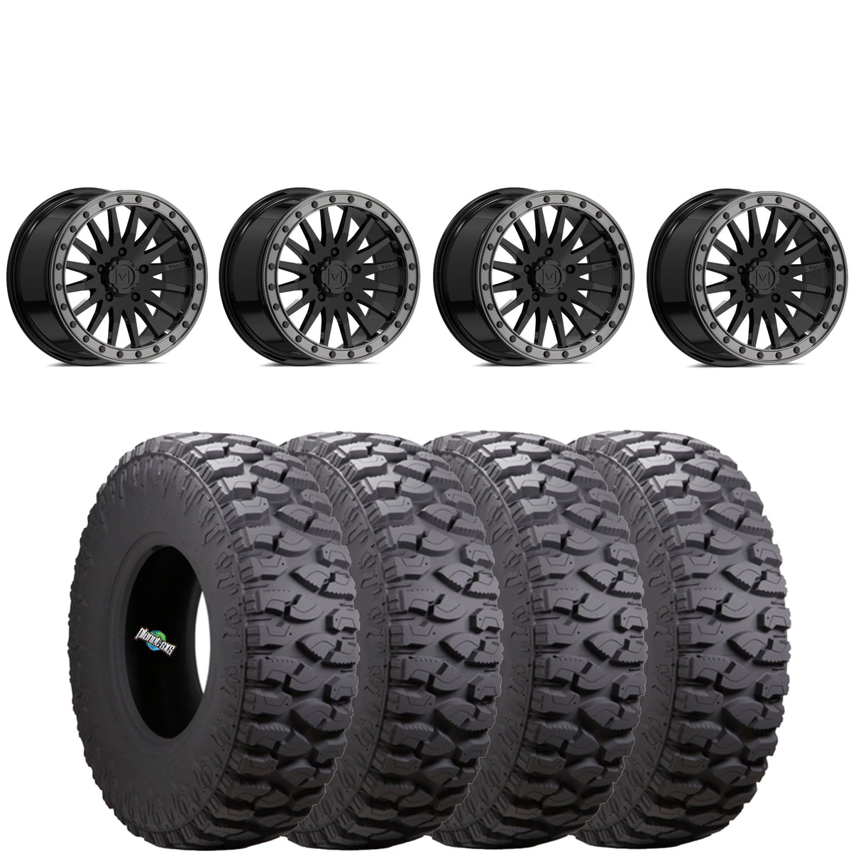 Get a set of (4) 15x8 5/4.5 Valor Offroad V06 beadlocks with a 6+2 (+40mm) offset mounted on 8 ply rated radial Atturo Trail Boss SxS tires with vehicle specific lug nuts included
