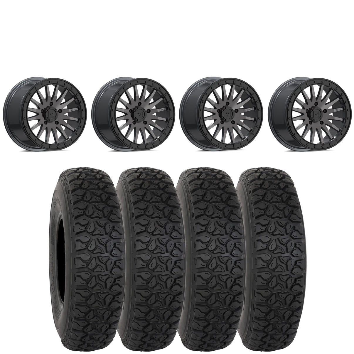 Get a set of (4) Valor V06 beadlocks mounted on 8 ply rated System 3 DX440 tires with vehicle specific lug nuts included