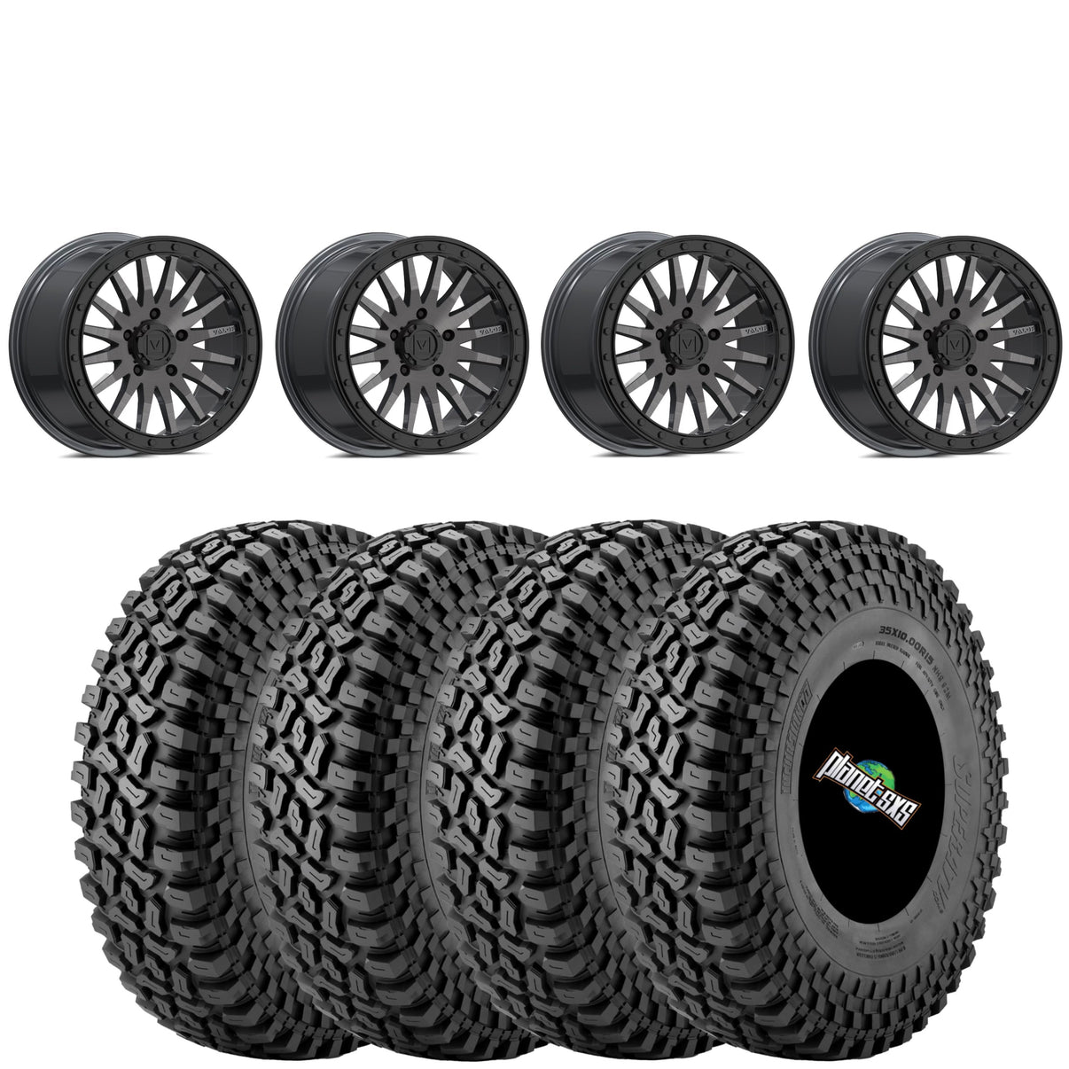 Get a set of (4) 15x8 Valor Offroad V06 beadlocks with a 6+2 (+40mm) offset mounted on 8 ply rated Super ATV Incursion A/T with vehicle specific lug nuts included