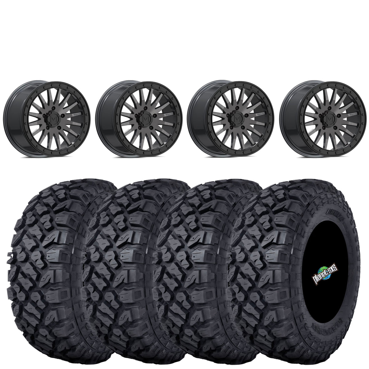 Get a set of (4) 15x8 5/4.5 6+2 (+40mm) offset Valor V06 beadlocks mounted on 8 ply rated steel belted 32x10-15 Kenda Klever tires with vehicle specific lug nuts