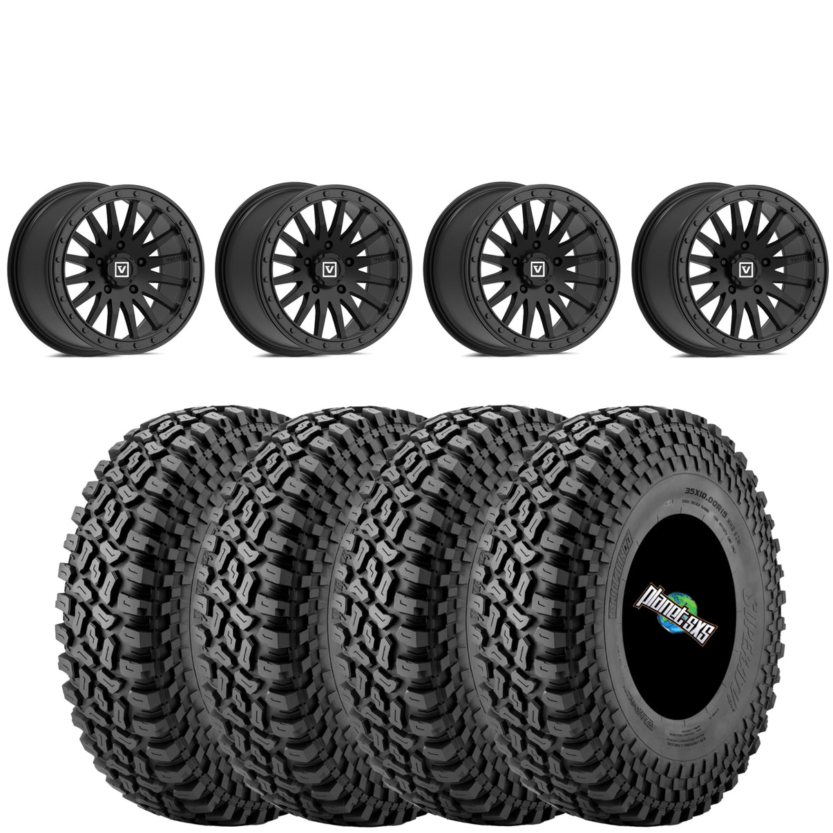 Get a set of (4) 15x8 Valor Offroad V06 beadlocks with a 6+2 (+40mm) offset mounted on 8 ply rated Super ATV Incursion A/T with vehicle specific lug nuts included