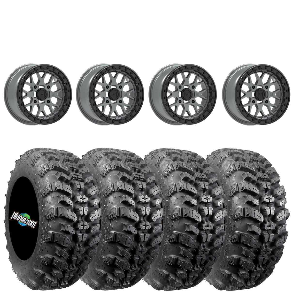 Get a set of (4) Valor V07 beadlocks 15x7 5+2 offset (+25mm) mounted on 8 ply radial Interco Sniper 920 tires with vehicle specific lug nuts