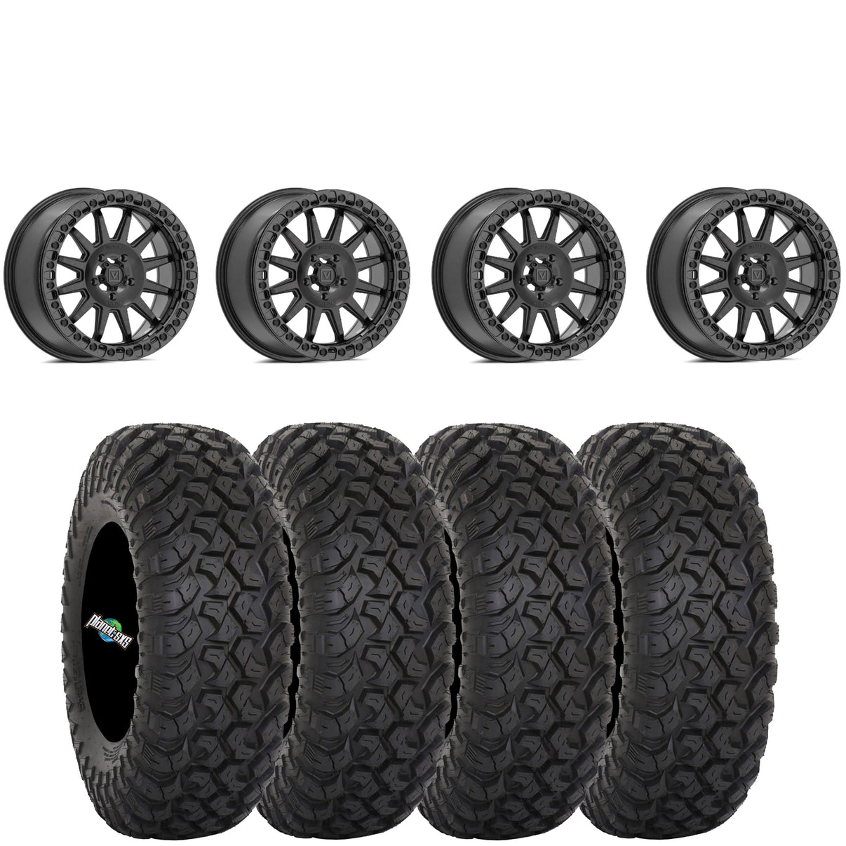 Get a set of (4) Valor Offroad V09 15x7 5+2 (+40mm) beadlocks mounted on 8-ply radial System 3 RT320 tires with vehicle specific lug nuts.