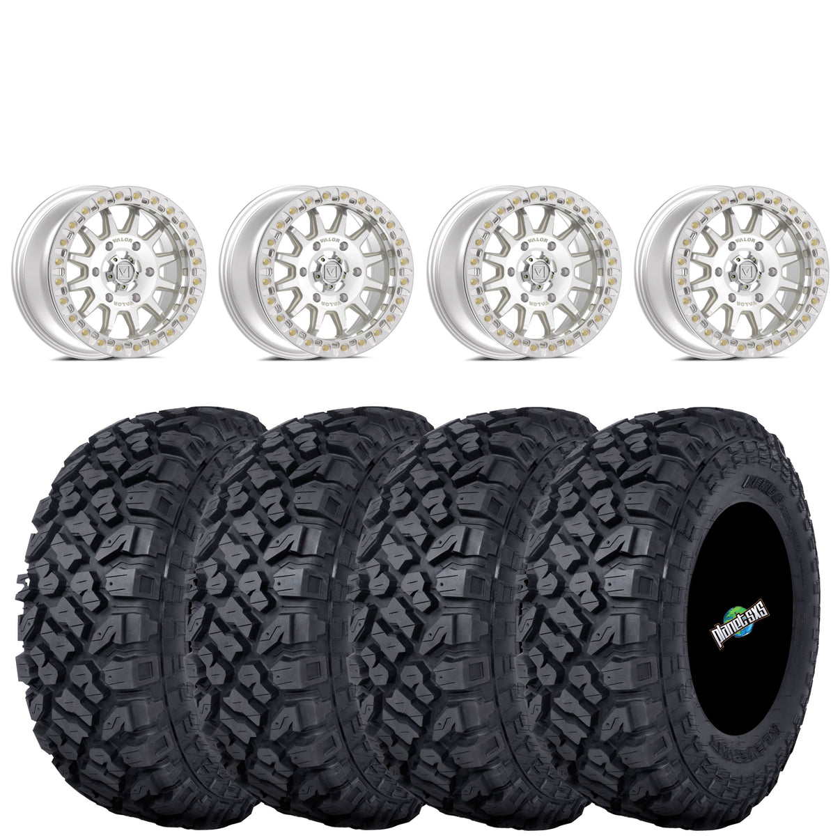 Valor Offroad V09 Raw Machined Beadlocks on Kenda Klever X/T Tires – UTV Wheel & Tire Kit