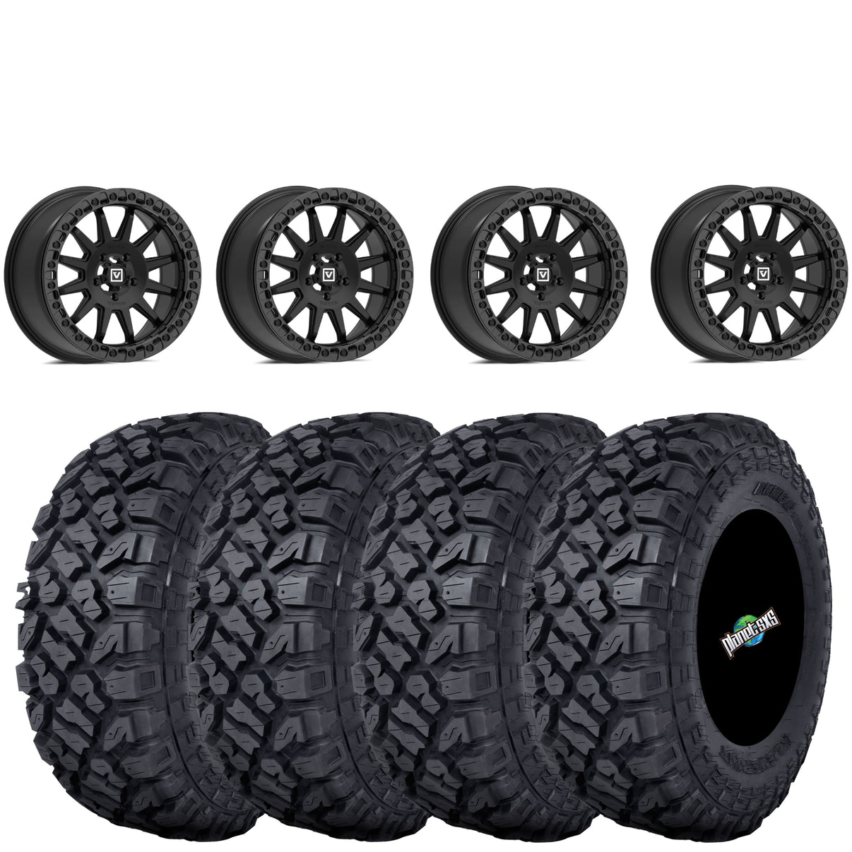 Valor Offroad V09 Satin Black Beadlocks on Kenda Klever X/T Tires – UTV Wheel & Tire Kit