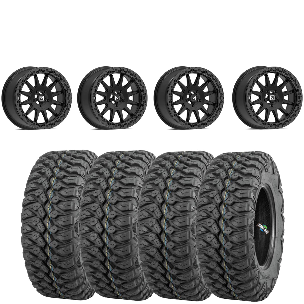 Get a set of (4) Valor Offroad V09 15x7 5+2 (+40mm) beadlocks mounted on 8-ply radial Quadboss QBT846 tires with vehicle specific lug nuts.