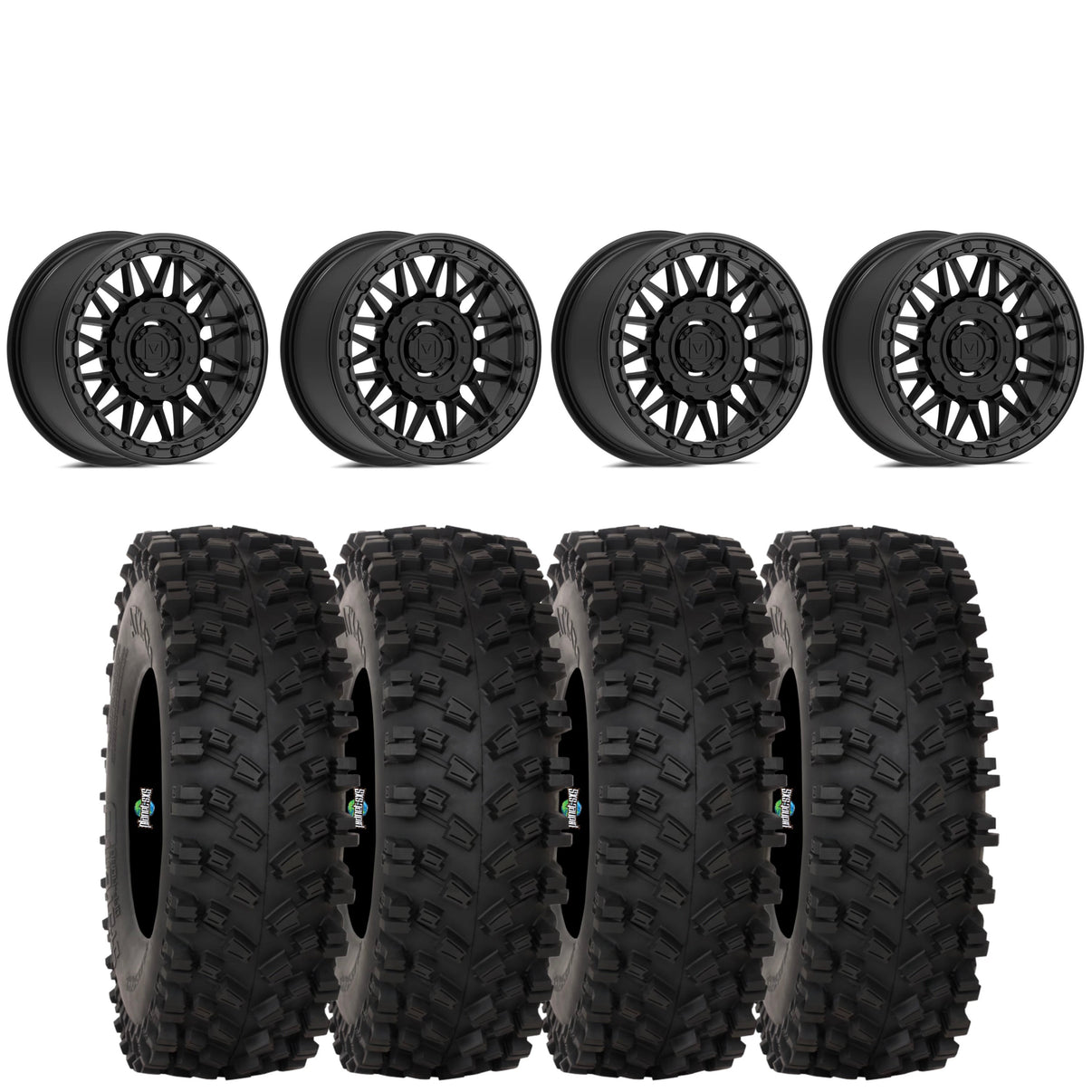 Get a set of (4) Valor V08 Dual drilled (4/137 and 4/156) 15x7 beadlocks with a 5+2 (+30mm) offset mounted on 8 ply rated System 3 ATX470 tires with vehicle...