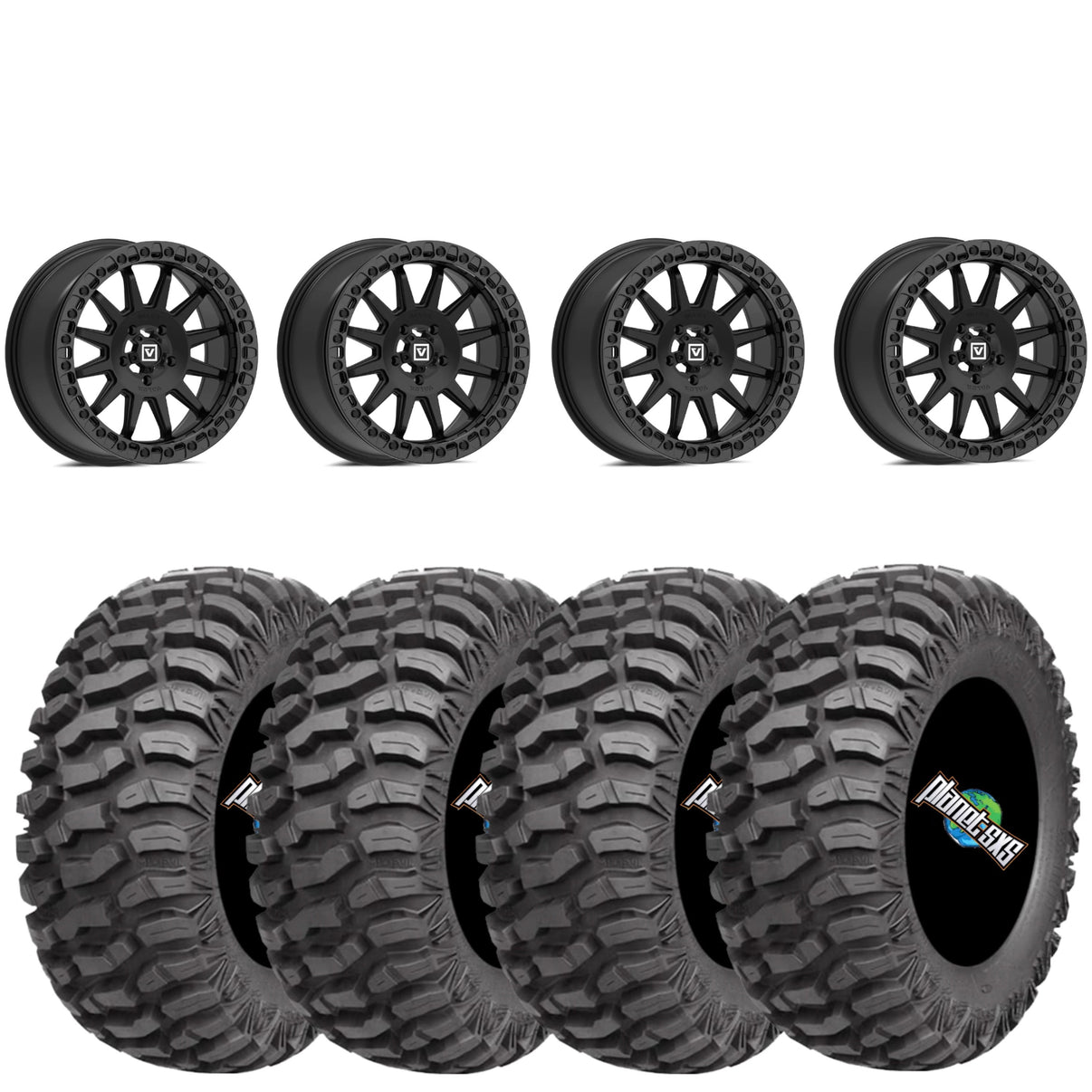 Get a set of (4) Valor Offroad V09 15X7 5+2 (+40MM) beadlocks mounted on 8 ply radial AMS M1 Evil tires with vehicle specific lug nuts included